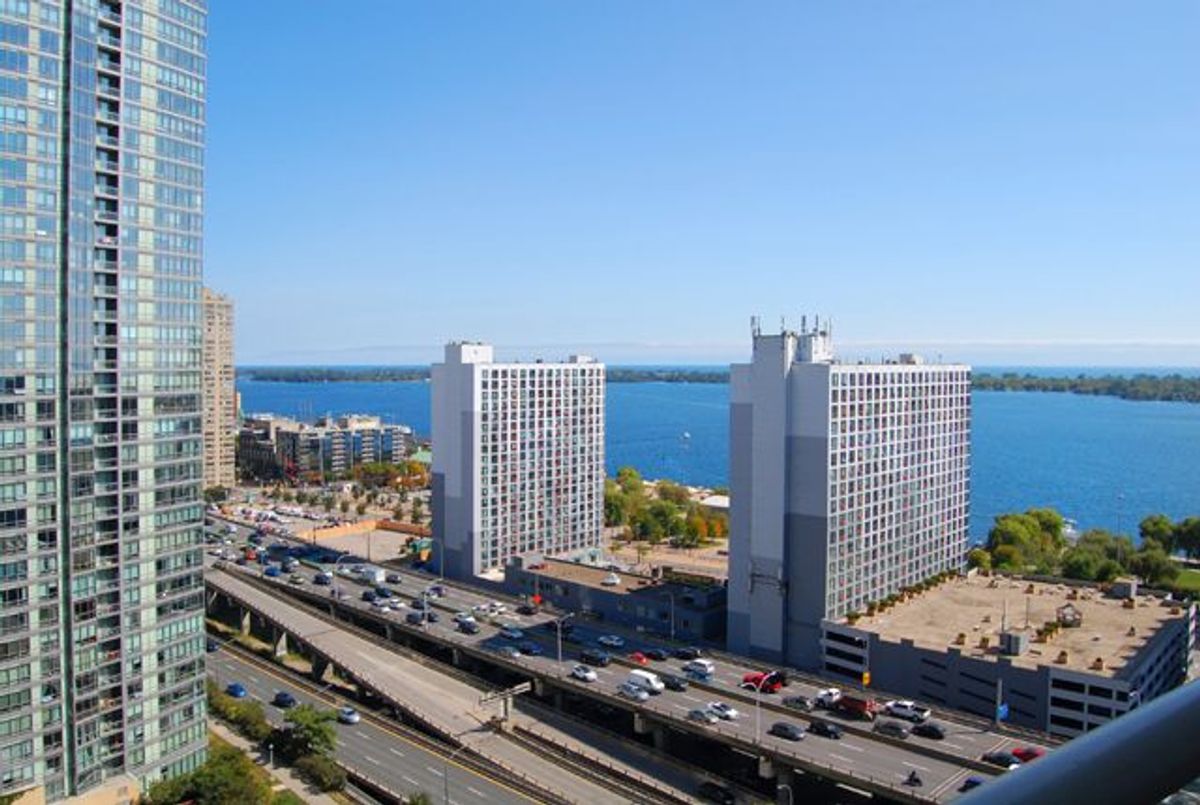 Spectacular City & Lake Views, Bright & Spacious 1 Bdrm & Den Suite Includes Parking & Utilities. Large Den Can Be Used As 2nd Bdrm/Office. Laminate Flooring, Granite Counters, Ensuite Laundry. Amenities Include Concierge, Exercise Rm, Indoor Pool, Rooftop Deck/Garden, BBQ's, Tennis Court , Visitor Parking, To Name A Few. Vibrant Community, Easy Access To TTC, Gardiner, Rogers Ctr. C.N Tower, Shops & Restaurants. Unit To Be Professionally Cleaned Prior To Occupancy.